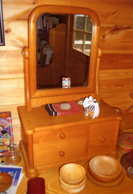 角が丸く やさしいデザインの鏡台では、鏡の向こうの ぼくとご挨拶。